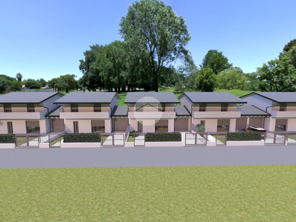 In un contesto residenziale tranquillo e curato, proponiamo in vendita un nuovo complesso di villette a schiera, progettate per offrire spazi ampi, luminosi e funzionali. Le abitazioni, sviluppate su due livelli, presentano al piano terra un open space con soggiorno e cucina, bagno di servizio e ripostiglio; al primo piano, tre camere da letto e bagno principale, con balconi che garantiscono luminosità e viste sul giardino. Ogni villetta dispone di giardino privato e box auto.