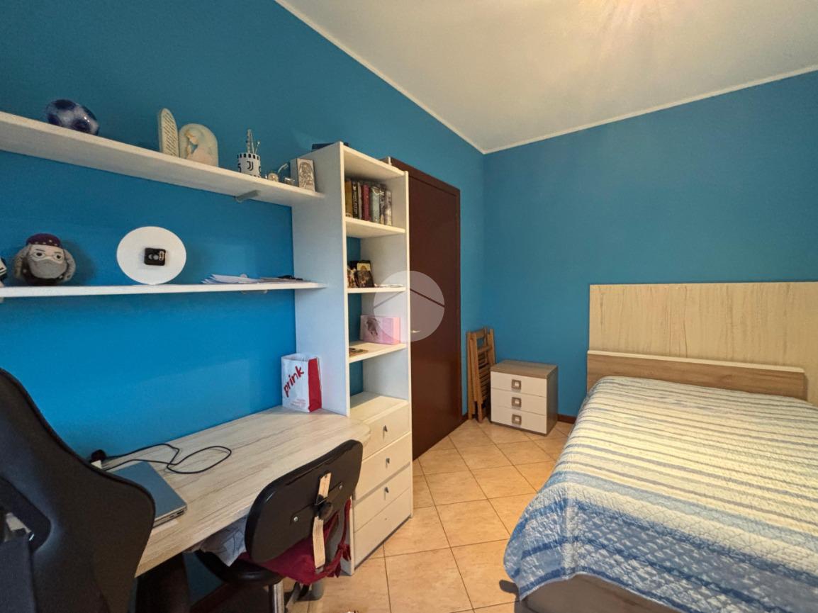 Un funzionale disimpegno separa la zona giorno dalla zona notte, composta da una pratica lavanderia/ripostiglio, un bagno finestrato di generose dimensioni dotato di vasca, una spaziosa camera matrimoniale con accesso a un balcone dedicato e una cameretta.