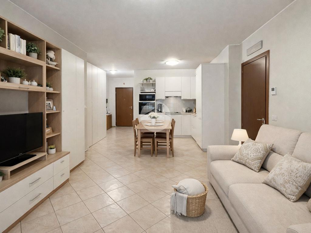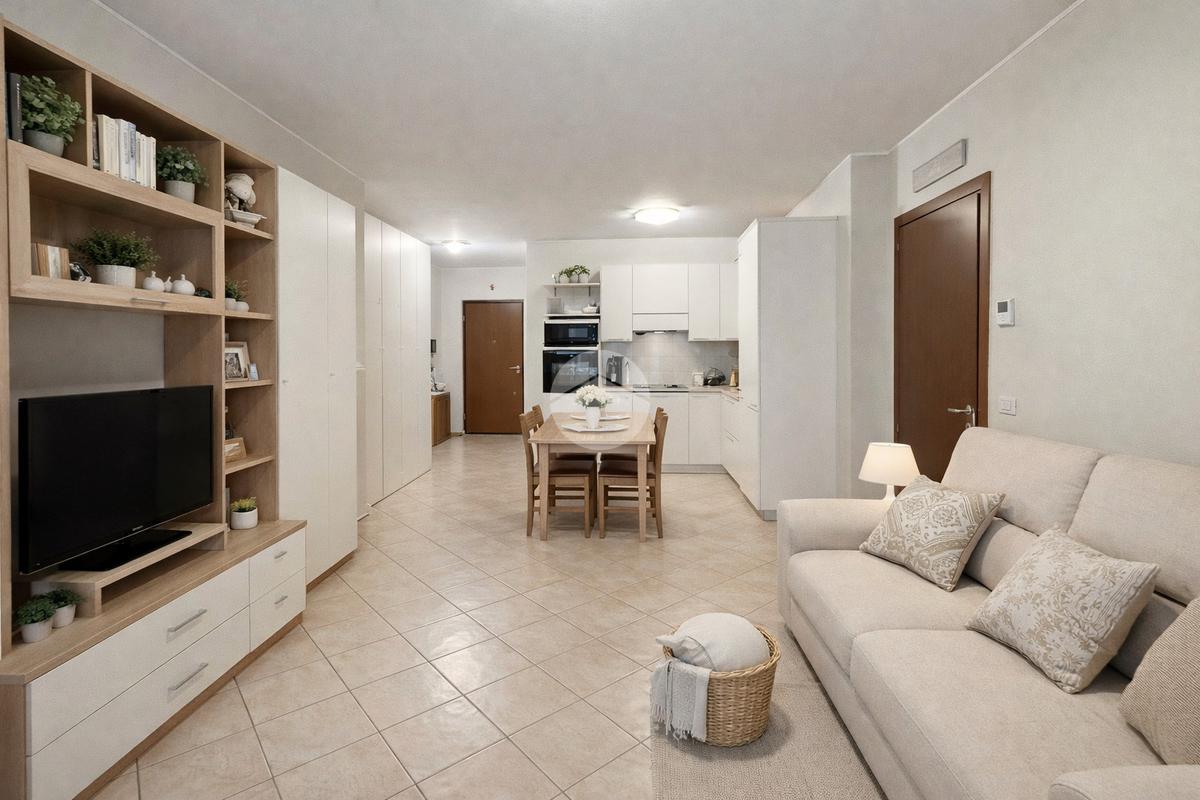 L’ingresso, comodo e armadiato, conduce a una luminosa zona giorno con cucina e soggiorno in open space, affacciata su un balcone vivibile che garantisce ottima luminosità naturale e uno spazio esterno ideale per momenti di relax.